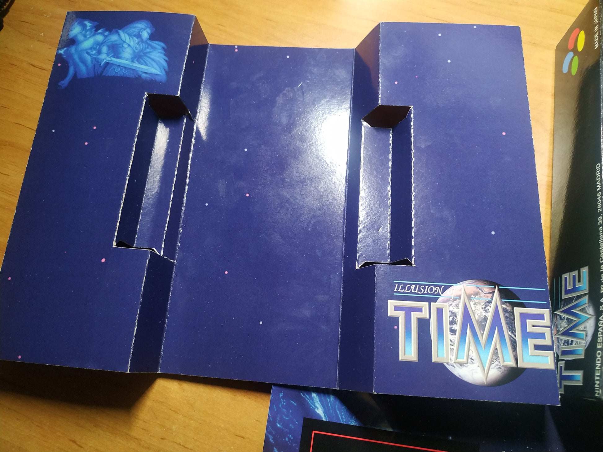 Cartón interior para la caja grande del juego Illusion of Time de Super Nintendo en su versión PAL EUR (la que llegó a España).